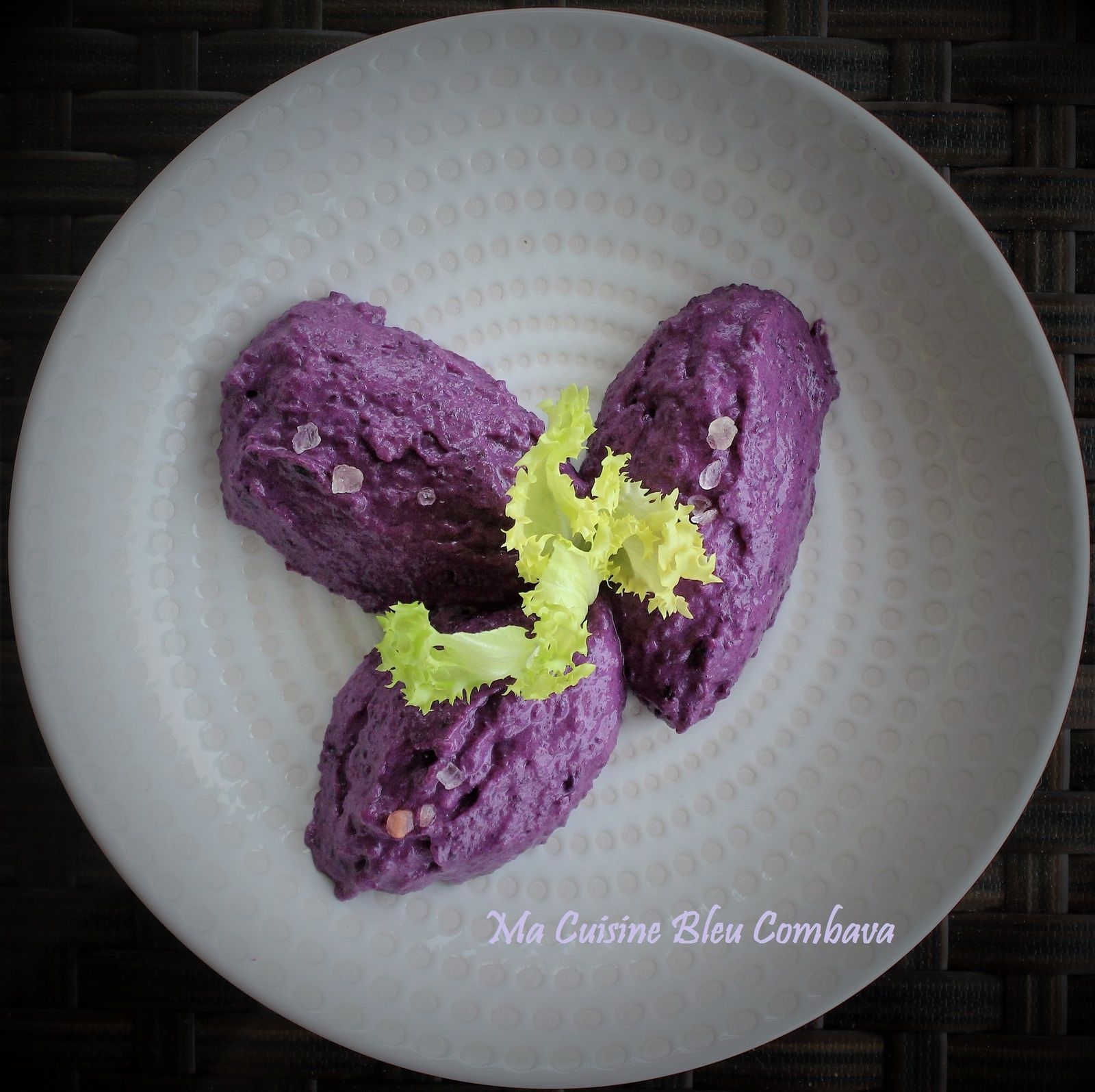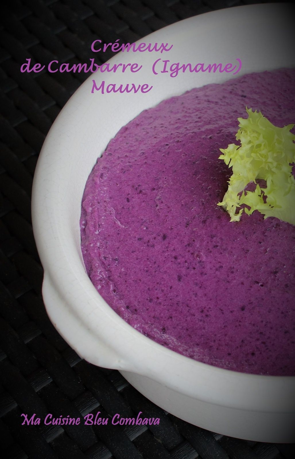 De retour de mon marché, je suis très satisfaite d'avoir trouvé du cambarre (igname ailée) et mauve en plus! Je vais vous en mettre plein les yeux avec une petite préparation crémeuse, de réalisation fort simple, pour accompagner les poissons ou les viandes.